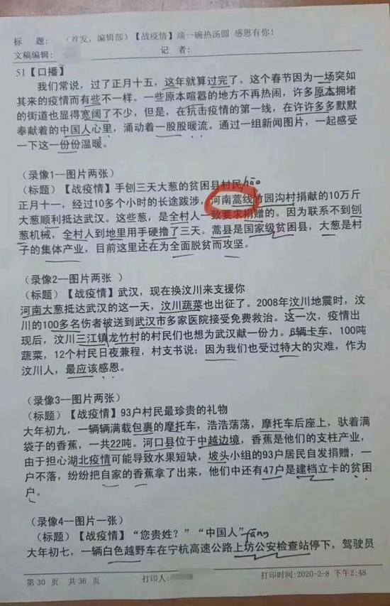 根据网友放出的疑似当天宝晓峰播报的新闻文稿显示,文稿上的“嵩县”直接被打成了“蒿线”,后面的“嵩县”也被误打成了“蒿县”。