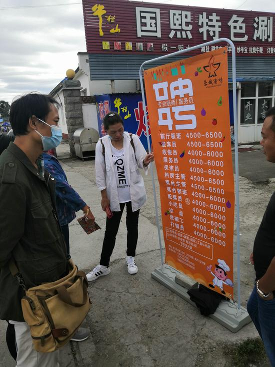 “招保安吗?”正聊着,一个大哥看到“8000-10000元”这几个数字就前来询问。