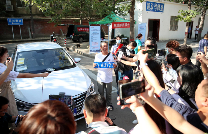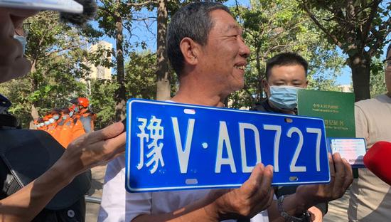 郑州第一张豫V号牌车主:太激动了 手在发抖