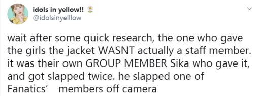 更有粉丝提出,镜头外递上外套并疑遭男工作人员“两次掌掴”的成员系中国籍艺人廉斯嘉(Sika)。
