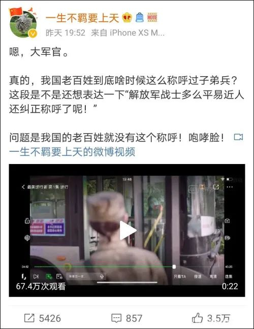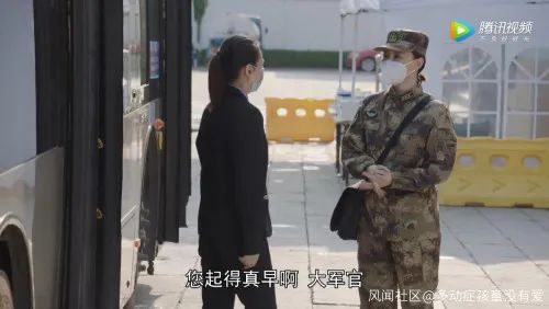 18日晚,网友@一生不羁要上天 在微博上分享了该剧的部分片段称,剧中的公交司机见到前来武汉支援的子弟兵竟称呼对方为“大军官”。