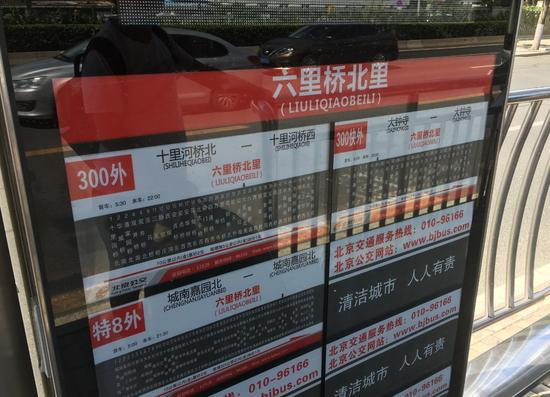 300路外环车停靠的站台设在西三环主路与辅路间的步道,站牌上只有300外、300快外和特8外三条线路,并没有见到901快。于先生四下环顾,发现自己所处的位置在站台步道最北端,而南侧不远处还有一个乘车点。等他走近一看,这里的站牌上又有三条其他线路,但依然没有901快的信息。