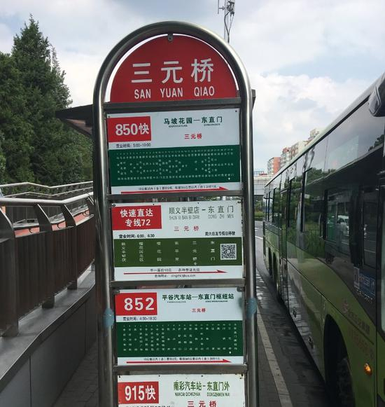乘客小石就曾经从顺义乘坐850路快车出发,准备中途在三元桥站换乘10号线地铁。850路快车的终点站是东直门枢纽,可以直接换乘2号线,小石想当然地认为,终点站的前一站三元桥也是地铁的接驳站。