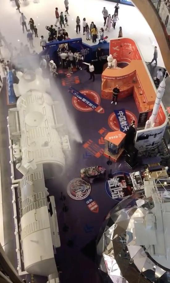 朝阳区消防救援支队防火监督三处调查得知,上周,龙湖北京长楹天街购物中心在商场东区一层中庭布置“北京设计周”中国航天科普展的分会场,布展单位为远思泽智(北京)文化传播有限公司。