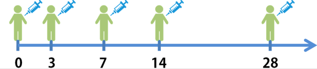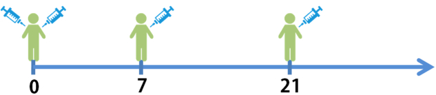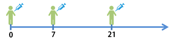 当天、第7天、第21天各接种1针。
