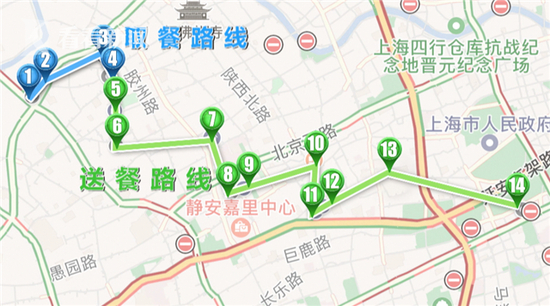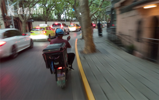 在调查过程中,记者在上海市静安区北京西路和陕西北路路口蹲守了一个小时,观察骑手们的骑行情况。北京西路禁止非机动车通行,陕西北路只设有单向道。按照导航提示,骑手们需要绕行,或者在该路段推行。但为了节省时间,几乎没有骑手愿意这样做。