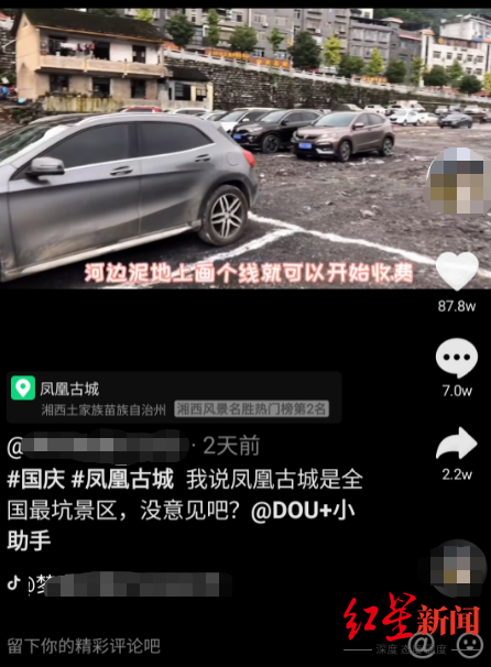 记者注意到,10月3日,凤凰县广播电视台官方抖音号发布视频称,“自驾游的游客注意了,凤凰停车收费标准看这里,政府定价”。视频显示,有多处地点对停车收费进行了公示。