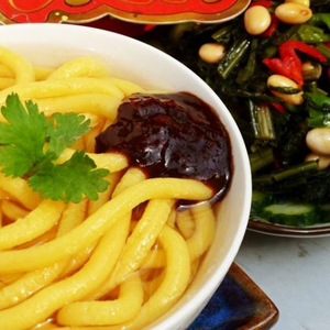酸汤子,又称汤子、馇子,流行于东北地区的辽宁东部、吉林东南部及黑龙江东部一带,是用玉米水磨发酵后做的一种粗面条样的主食。口感较为细腻爽滑,粗粮制作而成。