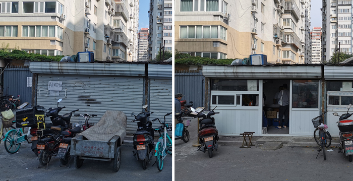 图7,翠林小区中,消失了两个摊位和一家有早餐的饭馆。
