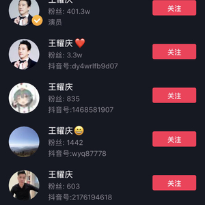 除了“靳东”,红星新闻记者发现,在抖音、快手等短视频平台上搜索其他明星的名字,比如岳云鹏、沈腾、杨幂、王耀庆、张译等,除了可以搜索到平台官方认证加V的账号,还会搜索到众多名字为该明星,但是却并未被平台加V认证的账号,疑似明星的高仿账号。