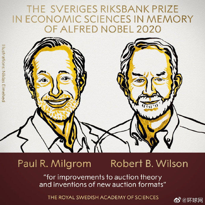 10月12日,瑞典皇家科学院常任秘书戈兰·汉松宣布,将2020年度诺贝尔经济学奖授予美国的保罗·米尔格罗姆和罗伯特·威尔逊,以表彰他们在“对拍卖理论的改进和对新拍卖形式的发明”方面作出的突出贡献,两位获奖者将分享1000万瑞典克朗奖金(约合760万人民币)。
