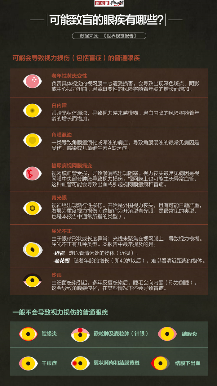 据《中国日报》报道,最新研究数据显示,高度近视引起的并发症已成为我国成人失明的第一主因。而除了高度近视,还有不少本该被治好的眼疾,最终酿成了失明这样无法挽回的悲剧。