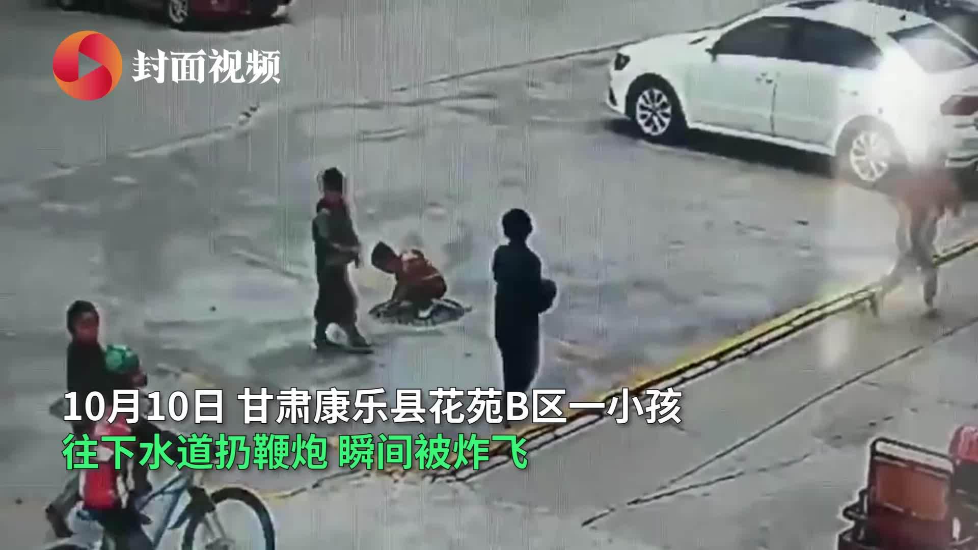 10月10日,甘肃康乐县花苑B区一小孩,往下水道扔鞭炮瞬间被炸飞。监控视频显示,事发前几个小孩正在小区里玩耍,其中棕色衣服小孩突然脚踩窨井盖蹲着往化粪池井扔鞭炮,瞬间两个井盖被炸开,井盖弹起瞬间也将男孩弹飞在地,周围小孩纷纷尖叫着躲开。目前,暂不清楚孩子受伤情况,提示:切勿向窨井和下水道内投放鞭炮、香烟等物。