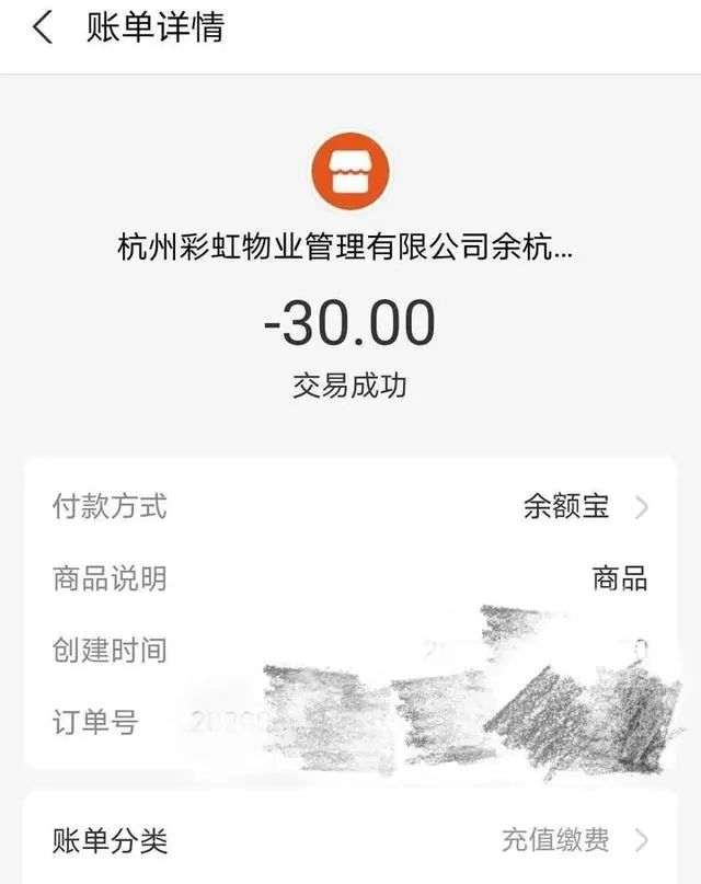 一位中介经纪人向记者提供了今年6月进入大华西溪风情排屋区看房时缴纳费用的转账记录,记录显示,该中介经纪人向该小区的杭州彩虹物业管理有限公司余杭分公司支付了30元。
