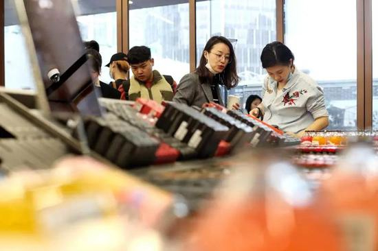 上周五晚上,市民苏茜循着微博热搜的“上海最美菜场”来到新天地一家10月11日刚刚正式开业的“菜场”,却发现和自己想象的完全不同:菜篮子里苹果和口红放在一起;冰柜里啤酒饮料旁边摆着化妆乳液。。。