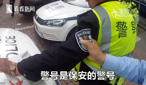 沙河口交警大队春柳中队副中队长汲怀河称,当时发现他身上穿的警服和装备,与我们现行的制式警服装备有很大区别,警帽破烂不堪,闪光背心后面的“大连交警”是粘贴上去的, 警号是保安的警号。
