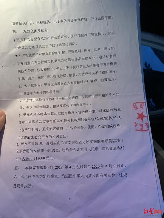 对此,悦好医院行政院长韩女士向红星新闻记者表示,医院并没有代言人的说法,“当时医院想做一些案例,认为她做出来的效果应该会比较好,所以就选择了她。”韩院长说,“她来做手术一分钱都没收,但做出来确实也出现了一点问题,这我们也承认……但这么多年来,也一直在给她解决。”