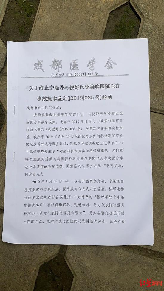 由于案件需要做鉴定,此前,宁女士拿着医院提供的病历去做鉴定时,却被质疑病历真实性出了问题,被终止了鉴定。红星新闻记者从成都医学会提供的这份终止医疗事故鉴定书中看到,“经该案专家组三位鉴定专家合议后一致认为:由于患者在鉴定会现场提出对病历资料的真实性、合法性、有效性不认可……专家一致决定终止该案的鉴定工作。”