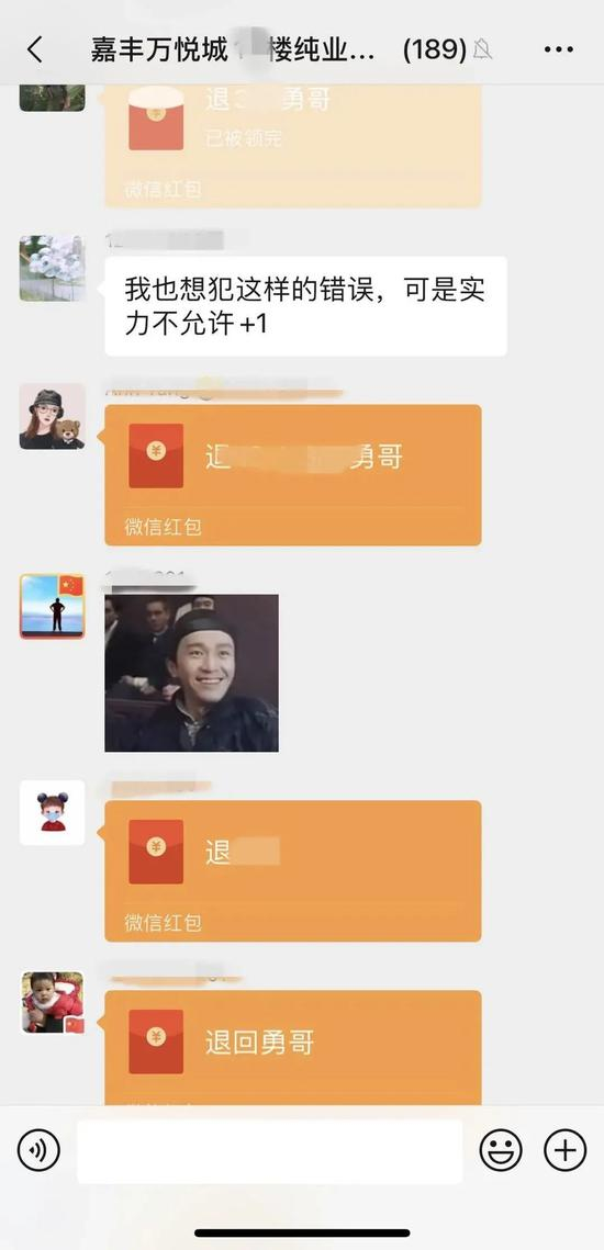 这天,他作为余杭区嘉丰万悦城小区的新业主进入业主群,当时群里一共189人,郑先生想着,自己刚搬进来,和邻居们都不熟,不如发个红包意思一下,活跃一下气氛,也可以促进邻里关系。