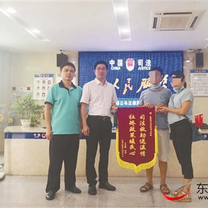 ■东莞启动“智慧矫正”新引擎,让社区群众更安心。图为矫正对象送锦旗感谢工作人员市司法局供图