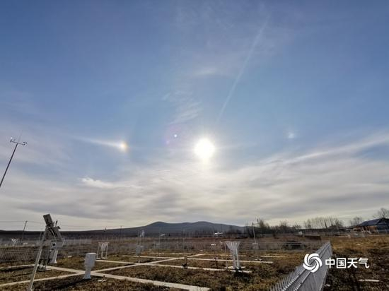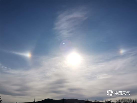 10月19日清晨,内蒙古呼伦贝尔市根河市和牙克石市两地出现“幻日”,天空同时出现了“三个太阳”。