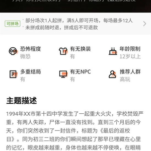 8月初,她看到玩家群里有人分享《最后的返校日》主题密室的游戏经历,恐怖、穿越、扮演等描述词勾起了小苗浓浓的兴趣。
