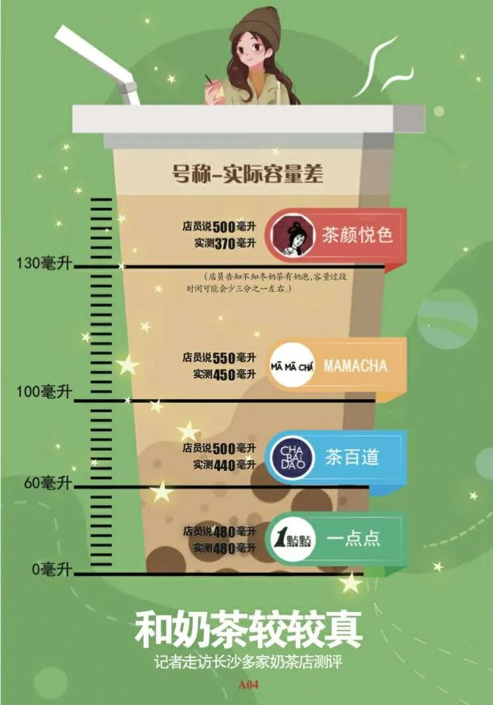 原标题:500毫升实测只有370毫升!记者带量杯亲测:茶颜悦色、MAMACHA、茶百道等多款网红奶茶实际容量与描述有出入