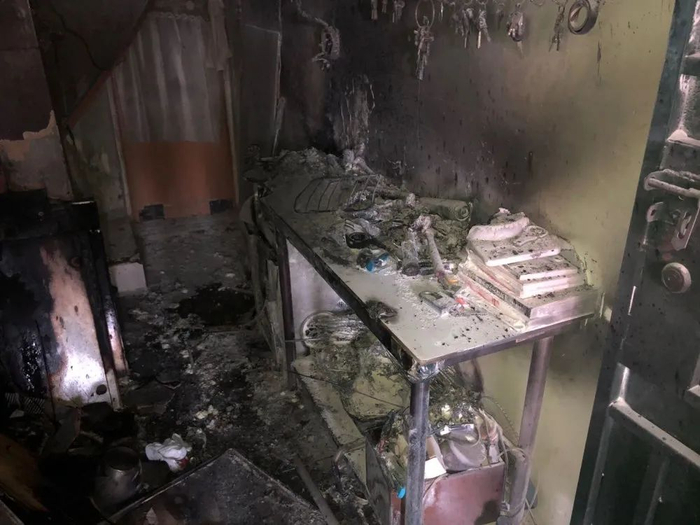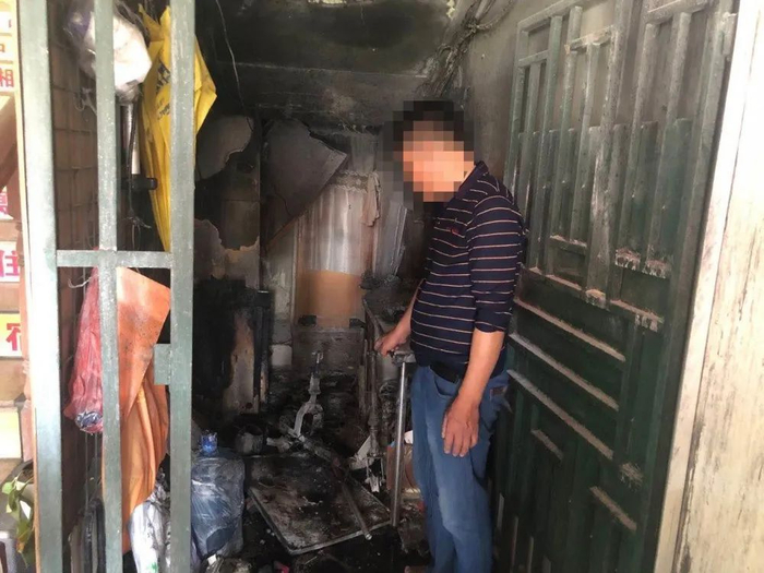 10月10日,上海浦东塘桥新路上一家修车铺发生火灾。