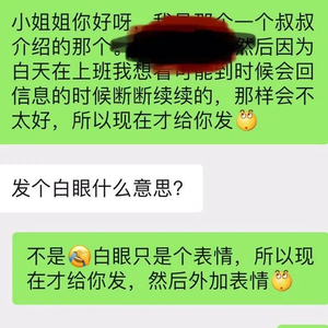 @陈三毛胖:对相亲对象都不敢随便发系统自带的表情,要么就发其他的收藏表情,翻眼的表情只对熟悉了不能再熟悉的人发。