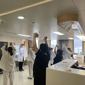 中日友好医生减重外科住院部里,运动康复师带着病人做术后恢复锻炼。实习生李雨凝 摄