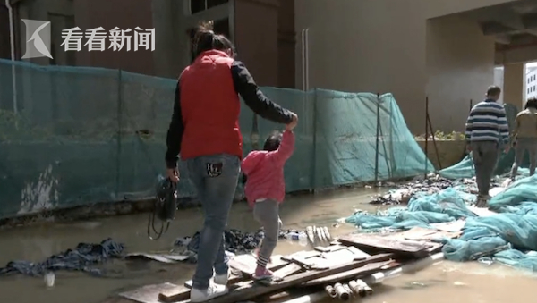 目前共有20多户业主搭建帐篷居住在烂尾楼里,每天出入所走的路,是业主们自己用木板、防尘网以及竹条所搭的路,还有其他的业主在陆续搬进。