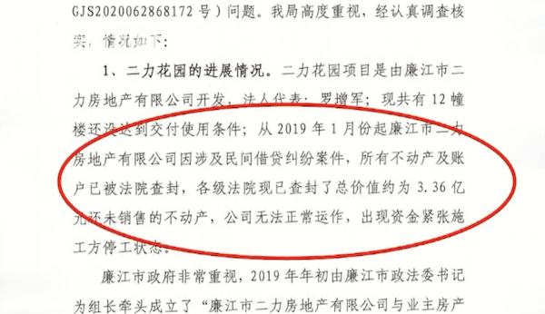 针对此事,2019年底廉江住建局已成立了专门的工作组,调查发现二力城三四期楼房烂尾原因,是由于开发商因私人借贷关系,将售房资金挪作他用,从而导致了资金链断裂楼盘烂尾。