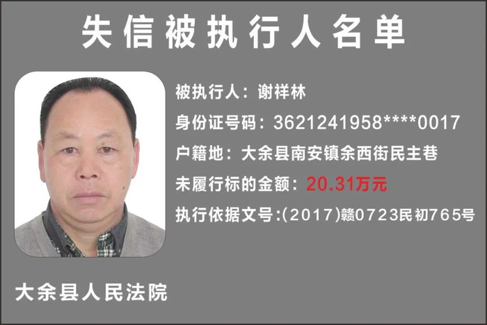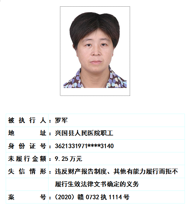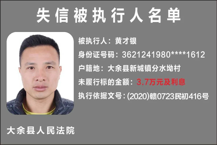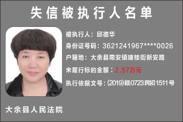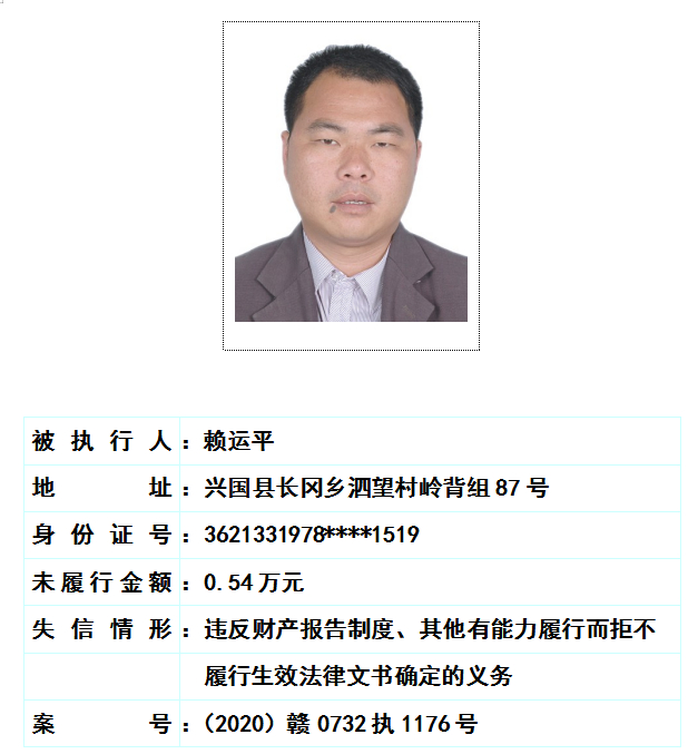 一批失信被执行人名单