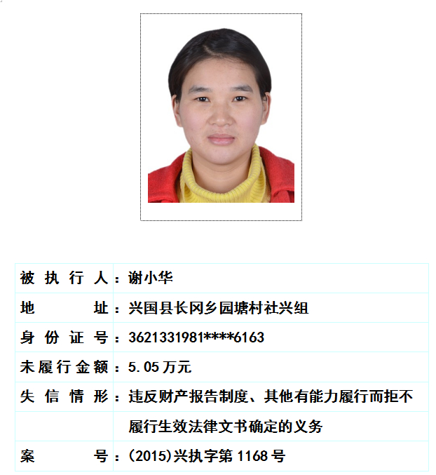 被执行人姓名:谢志华,女,42岁