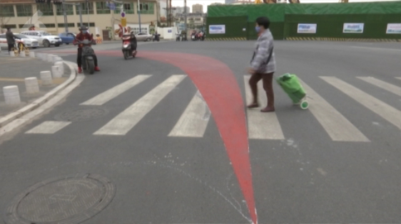 ▲昆明路口的大型车辆“右转弯盲区警示带”