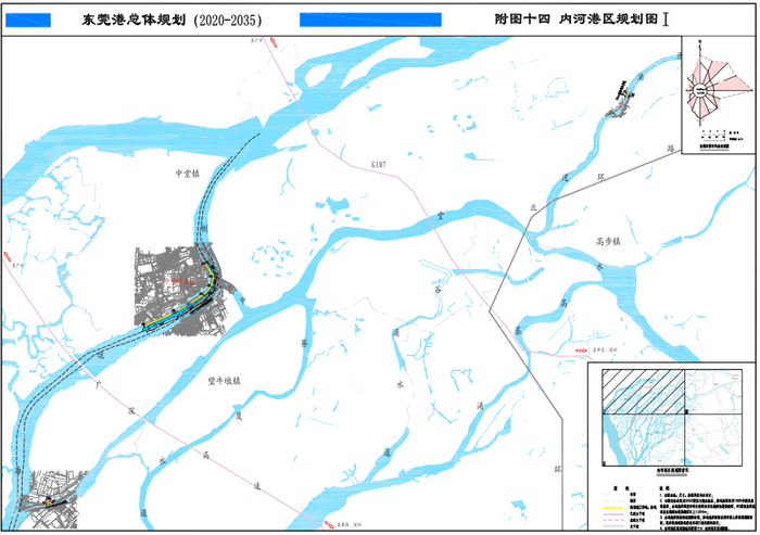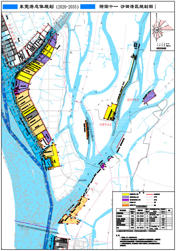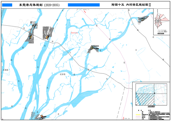 内河港区主要发展散杂货、集装箱运输,服务东莞市城镇生产、生活所需物资运输,兼顾城市休闲服务功能。