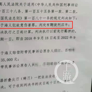 于海义因犯故意伤害罪获刑4年。/受访者供图