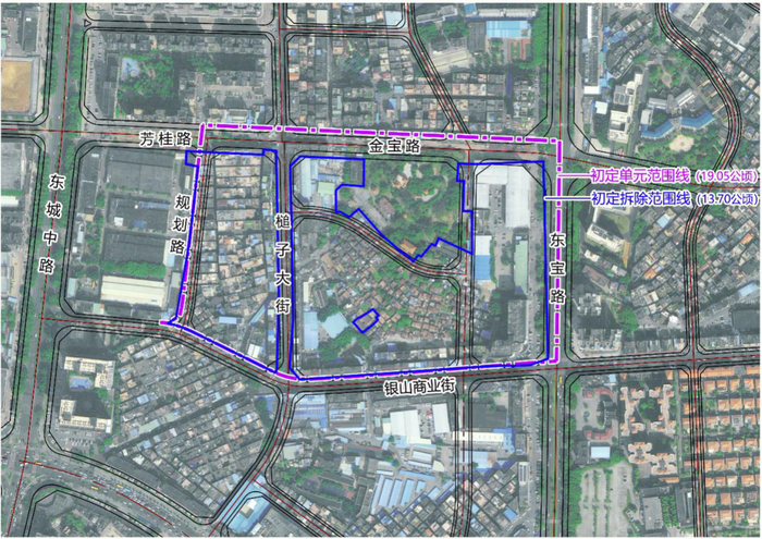 东莞市东城街道主山社区主山村北侧更新单元位于东莞东城街道主山社区主山村,东至东宝路、南至银山商业街、西至厂房(规划路)、北至金宝路,占地面积约为19.05公顷(约 285亩),实际用地面积、界线最终以测绘或政府相关部门审批为准。经初步摸查,单元拟拆除范围内集体土地约13.03公顷,基本属主山合作社所有(相关权属情况以最终权属调查结果为准)。