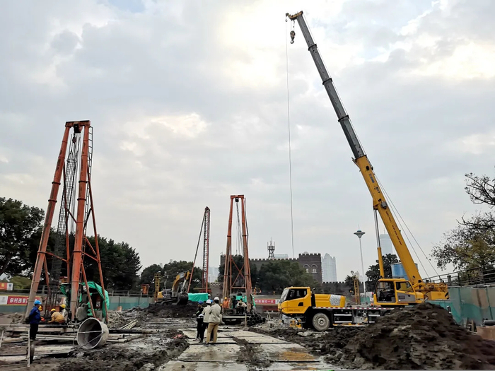 而在7号综合池施工过程中,建设方也创新采用了软土地基咬合桩施工技术,实现了微振动、低噪音的咬合桩施工,以保护临近的7号沉淀池池壁。此外,在后期对文保建筑内部进行改造时,建设方也在考虑引入对建筑主体结构影响较小的水割刀技术,进行建构筑物的拆除。