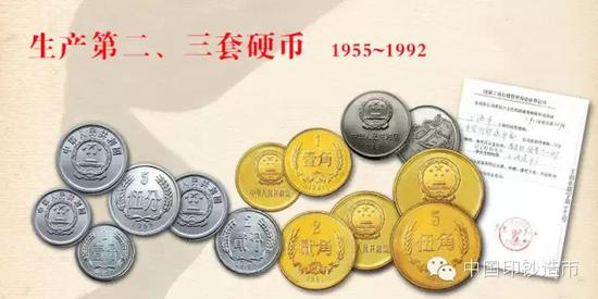 1955年,开始生产第二套人民币硬币(之前的第一套人民币只有纸币),从此人民币中有了硬币。