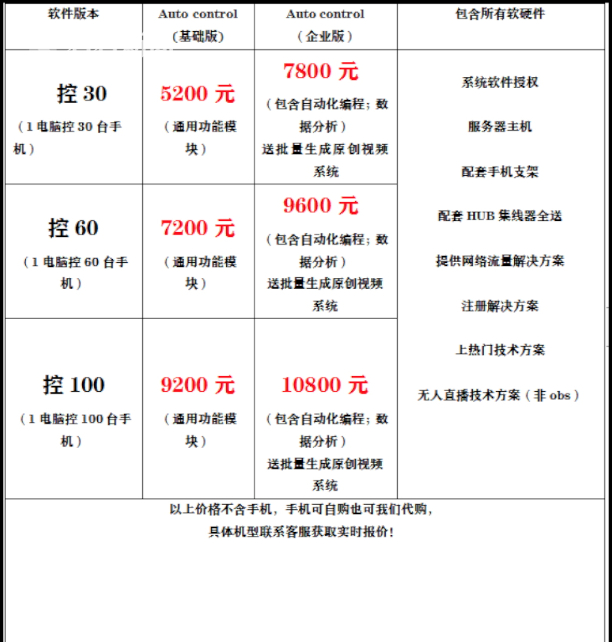 “上次我们连云港一个客户买了1700台手机,真机永远是最安全的。”在对方给到看看新闻Knews记者的报价单中,分为“30控”系统、“60控”系统、“100控”系统,对应的售价分别为7800元、9600元、10800元。