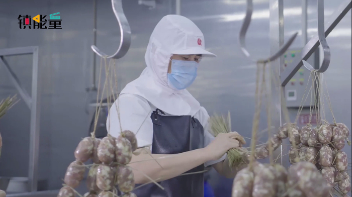 “还好你们来得早嘞,再晚点我们就下班咯。”腊肠制作车间里的胡姐边用水草绑腊肠边转头同我们讲话。