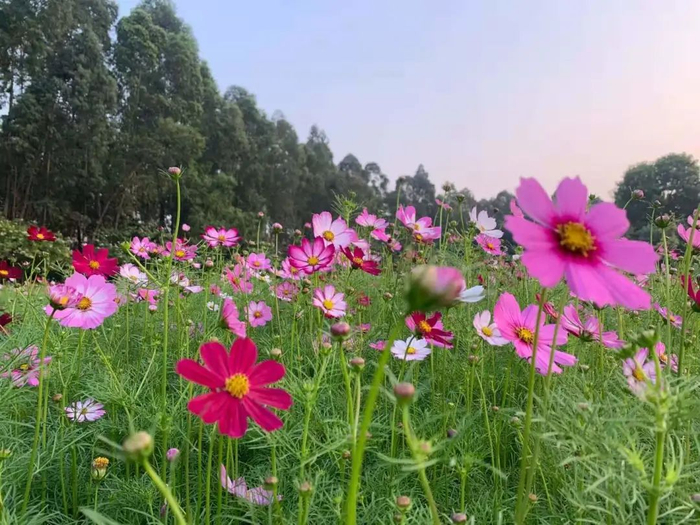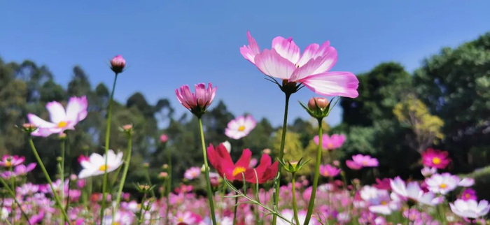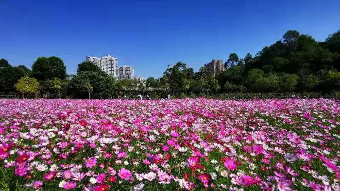 立冬已过,气候宜人,厚街镇凤山公园植物观赏区的7亩格桑花靓丽绽放,游人置身其中宛如徜徉在花海中。