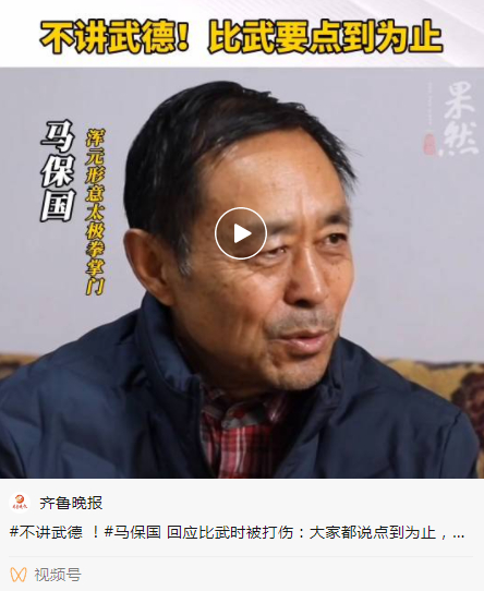 马保国:还会继续参加切磋,但不会参加比赛了。我1951年生人,虚岁70了,闪电五连鞭,一锤定音等动作,我还会打,也会拍视频,让大家看,让大家模仿,看大家能不能模仿我的动作。