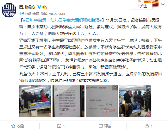 原标题:四川自贡一幼儿园学生大面积呕吐腹泻