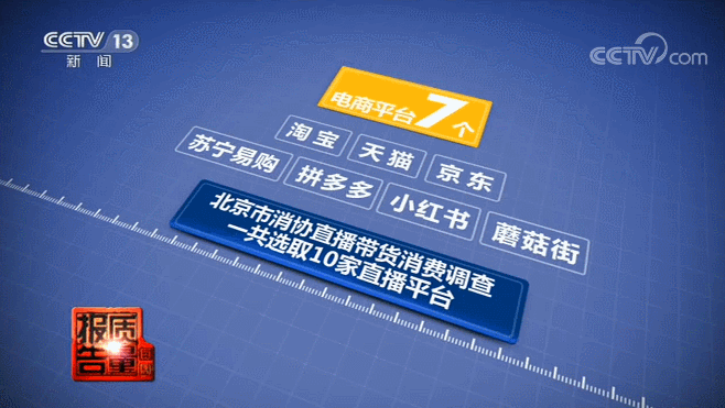为了了解直播带货存在的问题,北京市消费者协会近日组织开展了直播带货消费调查,以体验式调查为主,一共选取10家直播平台,其中电商平台有7个,涉及淘宝、天猫、京东、苏宁易购、拼多多、小红书和蘑菇街;社交平台有3个,包括抖音、快手和微博。