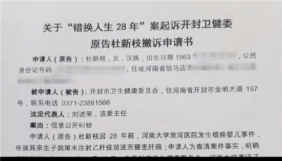 原标题:开封市卫健委和“错换人生28年”案当事人庭外和解