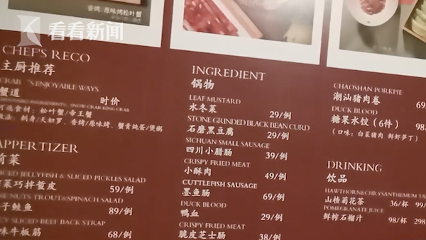 对于菜价,店里的行政主厨表示,其实没有那么夸张,只要不点帝王蟹,价格就和普通火锅店差不多,一人也就500-800元。