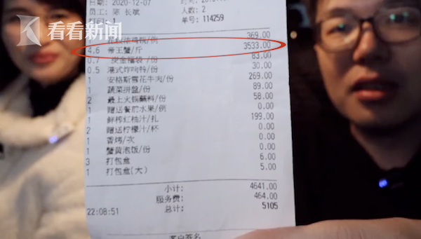 查看店内餐单也发现,普通菜品基本在100元以内,牛肉类和一些特色菜品稍微贵些,要近两三百,而且在红酒栏里,也没看到所谓的价值二十万的罗曼尼康帝,最后,苍苍他们点了个帝王蟹,最终价格加上服务费也就5100。