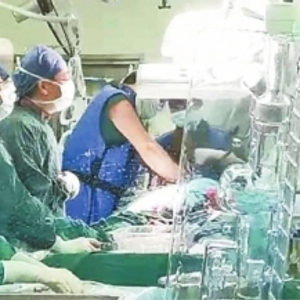 董念国教授团队快速决断,在持续的胸外按压下,用一个球囊挤开狭窄的主动脉瓣,然后施行经导管人工主动脉瓣置换术。